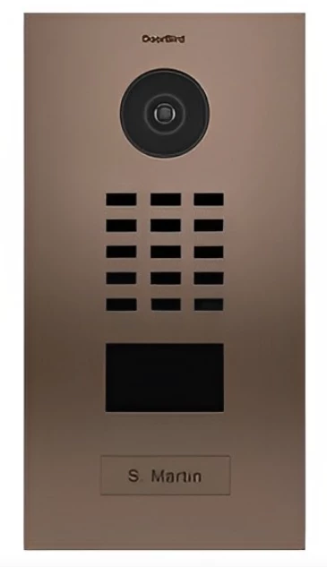 D2101V door bird IP video intercom, stainless steel V2A, brushed, PVD coating with a bronze finish, 1 call pushbutton.