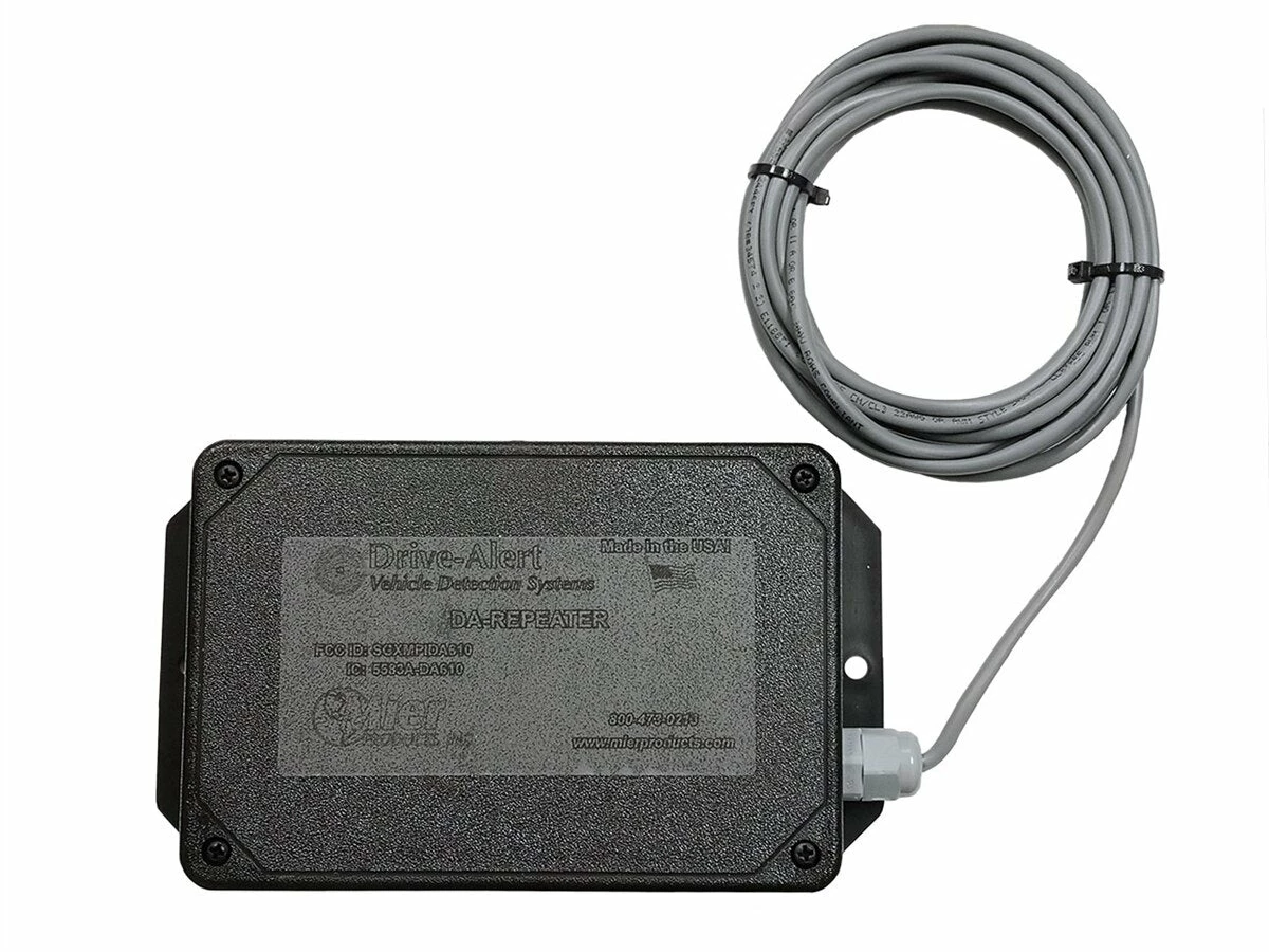 The DA-REPEATER from Mier allows you to increase the range of your driveway alert system up to an additional 1000 feet away in a direct line of sight. It can be installed on the DA-600, DA-605 or DA-500 Drive-Alert Control Panel/Receivers to allow DA-100CP chimes to be installed in additional buildings/locations or to another DA600/DA605.