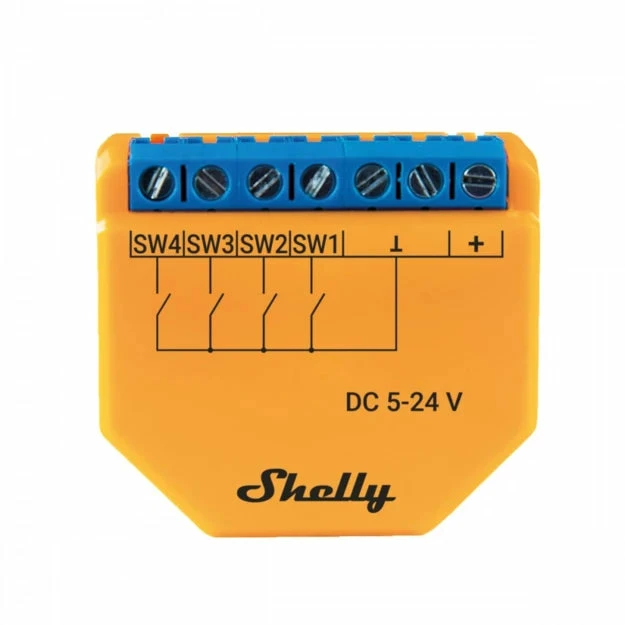 Shelly Plus i4 allows you to manually activate or deactivate any created scene, run synchronized actions, or execute complex trigger scenarios. You can use Shelly Plus i4 to control other connected Shelly relays, sensors, or HTTP and MQTT-controlled devices. Small enough to behind every wall switch, Shelly Plus i4 can show the status and control the action of four inputs.